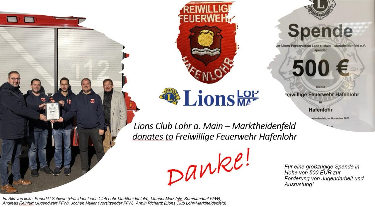 14.11.2025: Spende an die Freiwillige Feuerwehr Hafenlohr
